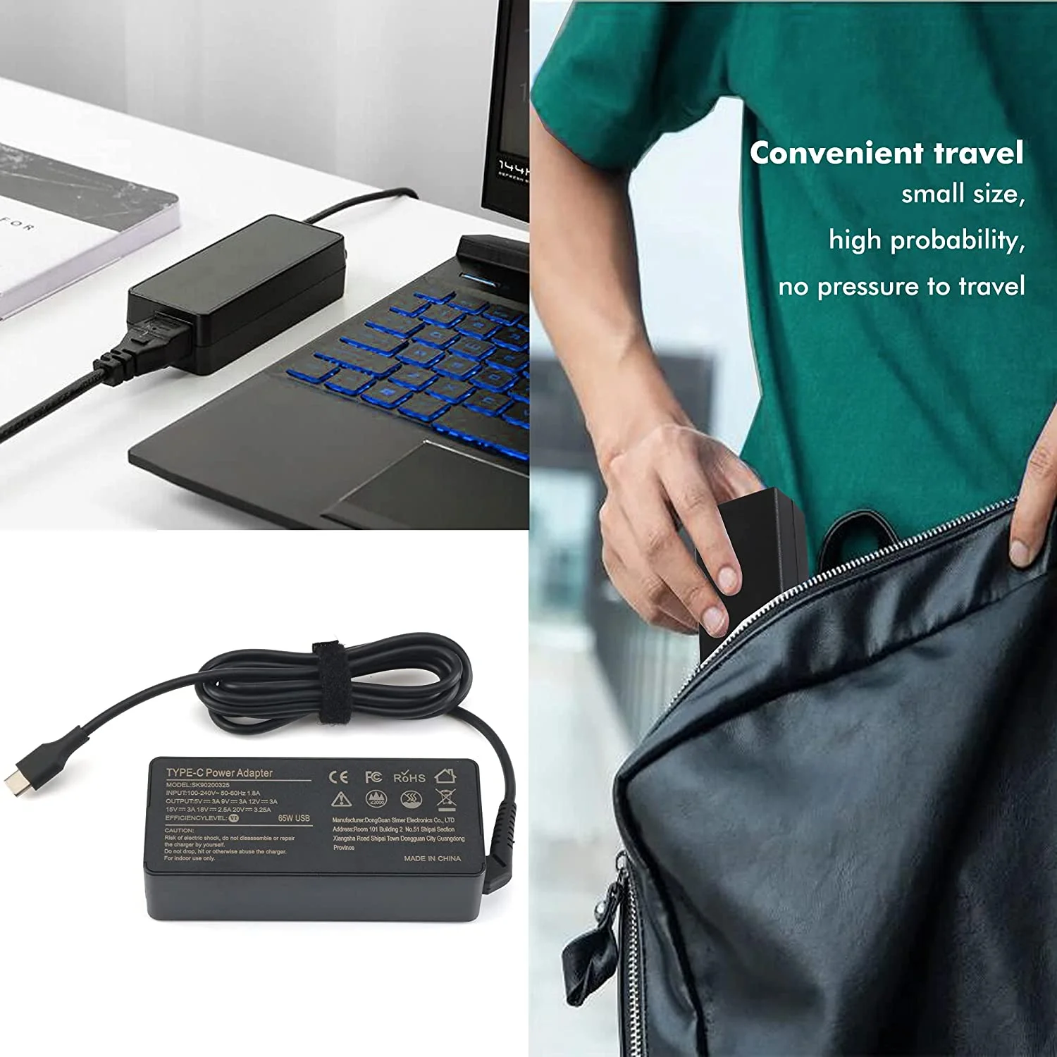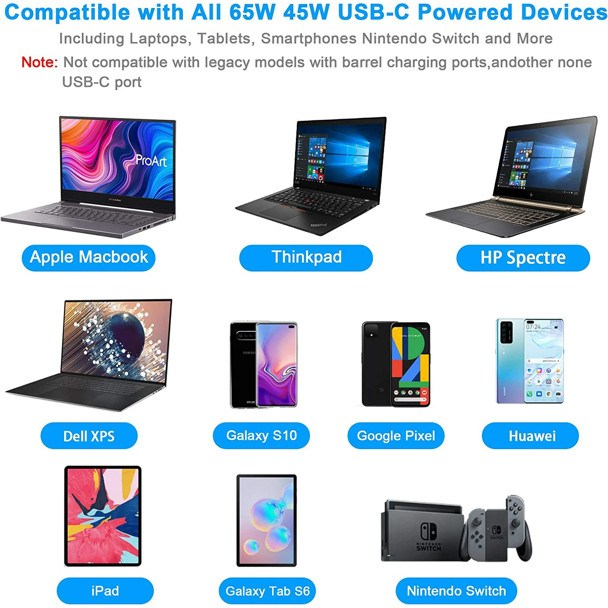 - High Power Output: Output Max: 65W ~ 20V 3.25A/15V 3A/9V 2A for fast and efficient charging.